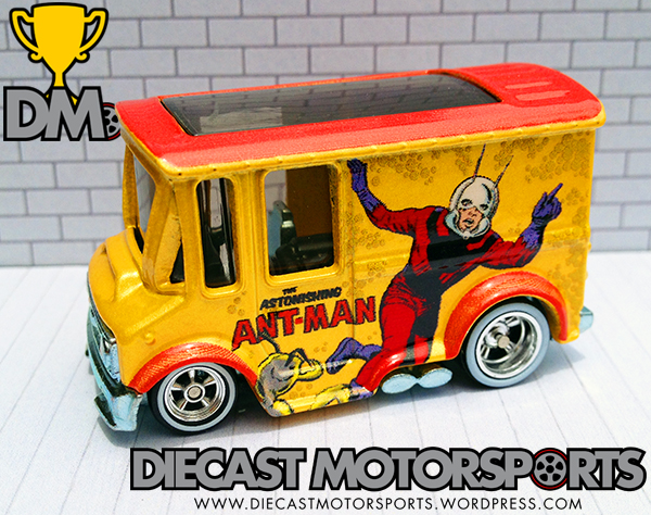 With the release of the Ant-Man movie today, its fitting that we received an Ant-Man Hot Wheels in this current wave of Marvel cars in the Pop Culture line. For some reason, Hot Wheels likes to use the old comic graphics versus the new movie graphics for its Pop Culture line–they do this for the other series in this line as well. It could be that the Pop Culture line was formerly known as Nostalgia line, as well as Nostalgic Brands line, so using the old graphics would be a “nostalgic” way to look at these licensed brands.