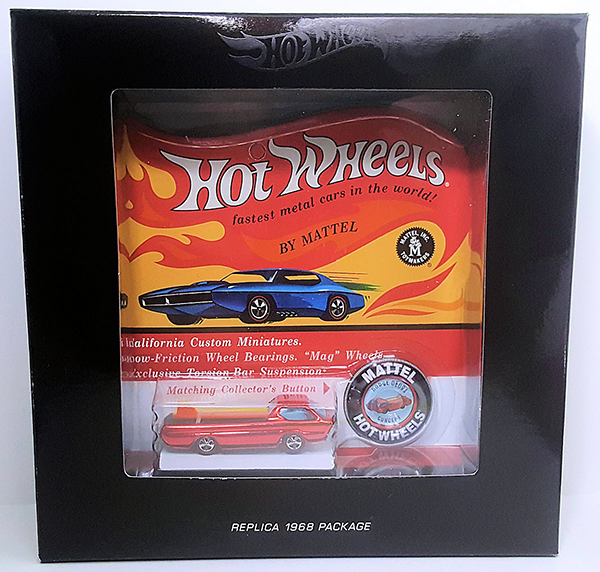 Taking the replication of redline-era Hot Wheels models a step further was the introduction of the #HWC Original 16 series. Since its introduction in 2011, this series that spans several years has released 8 of the 16 cars, with plans to release the last 8 by the end of 2018. These cars have not only been terrific tributes in their #Spectraflame Paint and Neo-Classic #Redline Wheels, but have been as close to the originals as we probably will ever get — the packaging is so close to the original 1968 packaging that legally Hot Wheels had to stamp “REPLICA” and “REPLICA PACKAGE” all over it. Heck, the packaging even features a replica of the original metal button as well. To top it all off, the car and blister card packaging come in protective “black box” packaging that enhances the display of these.