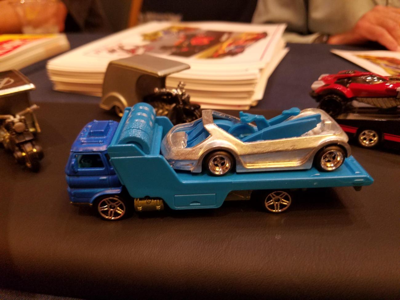 Rumor has it that Hot Wheels Designer, Mark Jones is on the project AND as it turns about, we may have already seen a glimpse of what the Deora III will look like. A few collectors think that Mark previewed the casting at his autograph signing at the 32nd Annual Hot Wheels Collectors Convention back in October. It is seen here on the back of another new casting — called Wide Open — which will appear in the Car Culture / Team Transport line.
