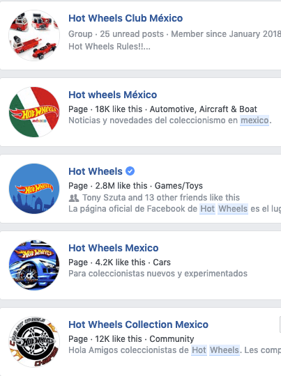 A: Hey Hector. I am not sure of another Mexico convention outside of the one that just happened in December. You can try the HWMexicoCollector.com web site, but you may have better luck trying a Mexican collector group on Facebook. I’ve screenshot some of them below.