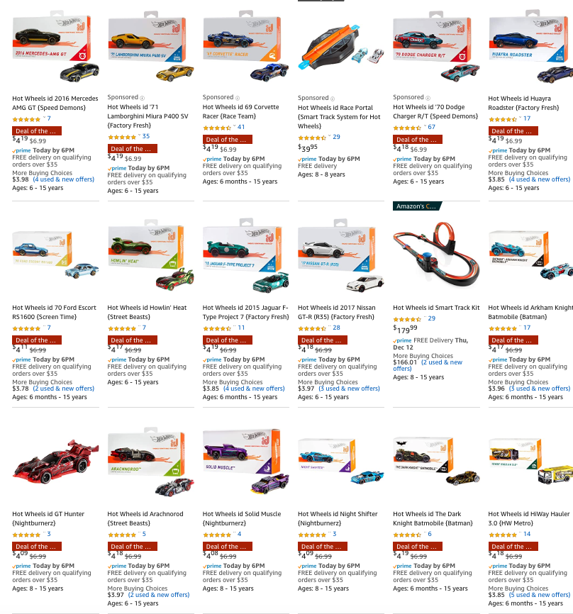 12/9/2019 — Whether you have been buying all of the #Hot Wheels iD line, only buying the ones you like, or just looking to spread some Hot Wheels holiday cheer, TODAY is a great day to pick up Hot Wheels iD cars on Amazon. Amazon has decided to feature the line as their DEAL OF THE DAY today with 40% OFF most of the cars in the line — basically anything from the first couple of waves. The cars below are featured as part of the 40% OFF sale:
