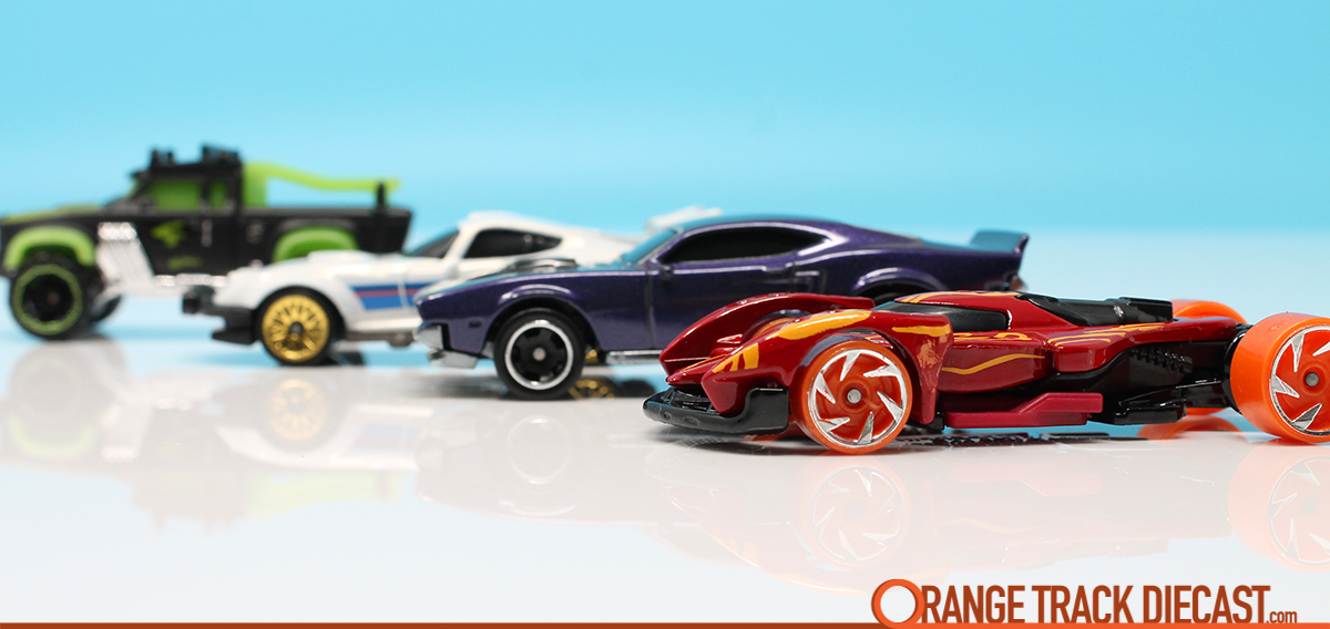 Hot Wheels cars from the 2020 Fast & Furious Spy Racers “Action Feature” line (Rally Baja Crawler, Astana Hotto, Ion Motors Thresher, Hyperfin)