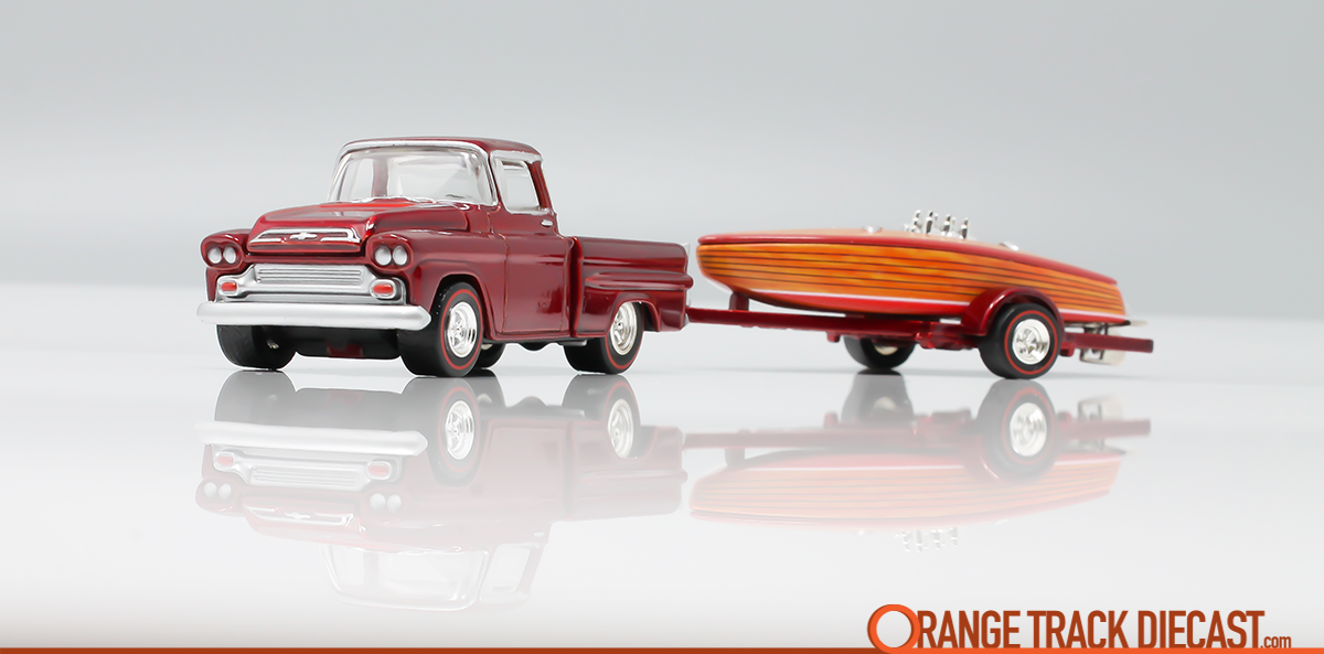 The #Crackerbox Racer boat is a great example of something I am not into totally capturing my attention. Had this boat been released by itself (or even with the trailer) there is no way I would have ever bought it. Pair it with the #’59 Chevy Apache Fleetside and the story comes alive.
