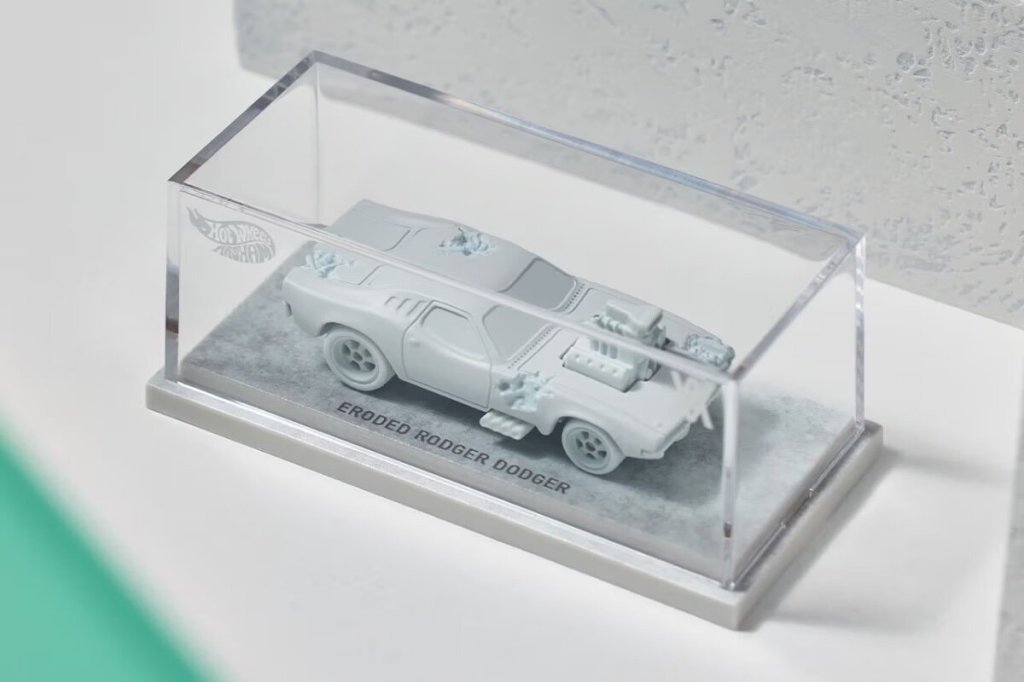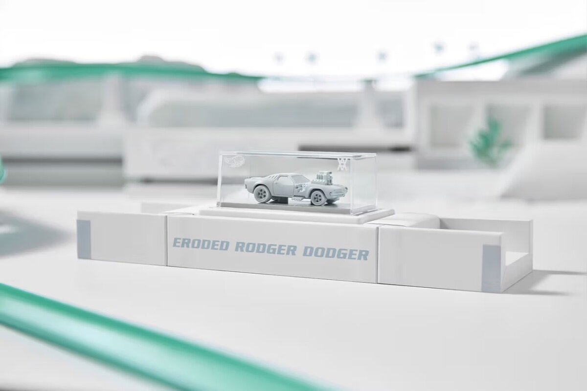 This collaboration is a huge step for Mattel Creations which goes beyond decorating existing castings with new graphics. These silkstone castings will be a first for the brand and the eroded elements make it clear this is a Daniel Arsham piece — merging the Hot Wheels collecting world with that of contemporary art.