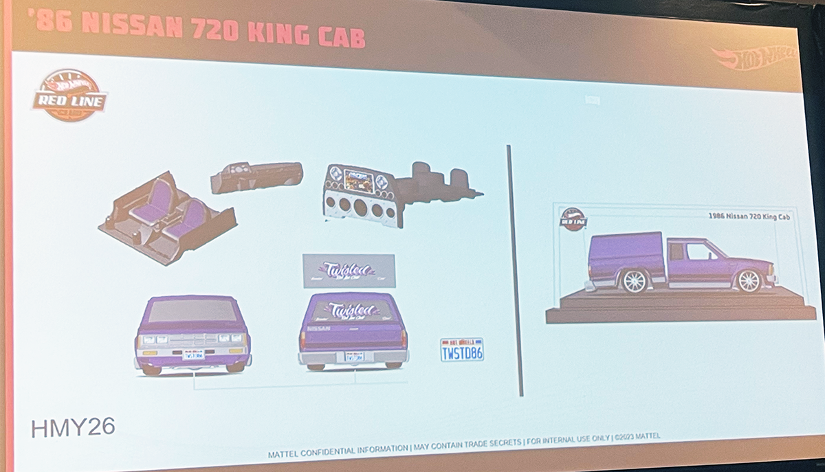 Mini truck fans will have to wait a little longer for the ’86 Nissan 720 King Cab. We saw an unfinished prototype that still needed some tweaking when it came to the articulation piece, but it was finished in the spectraflame dark purple (sans graphics) that the truck will come in. Another innovative piece that will require a little more development time to get it right.