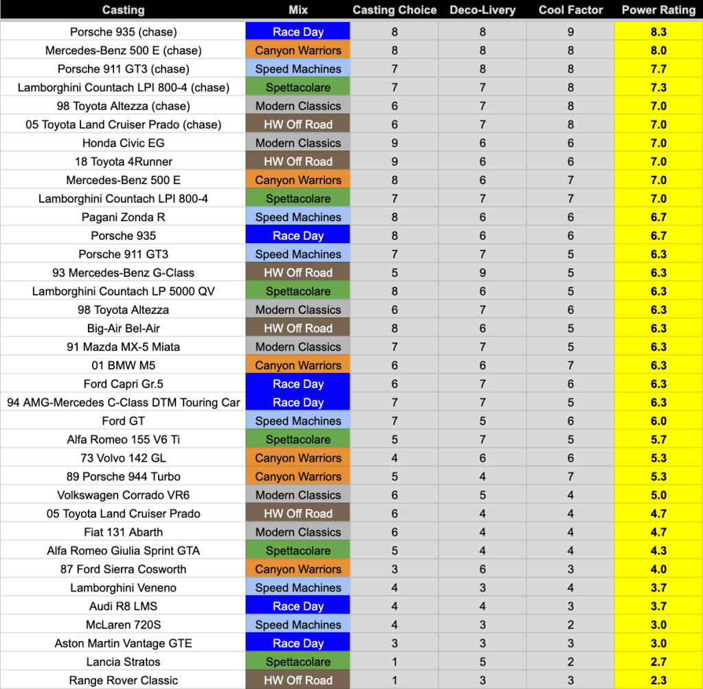 There you have it! Our sixth #Power Ratings here on OTD for #2023 Hot Wheels #Car Culture. What do you think? Do you agree with these ratings? Let us know in the comments below!