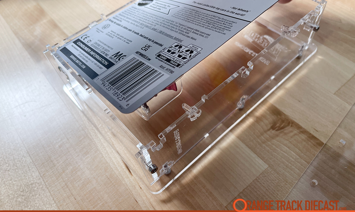Before you finish building your METRICS acrylic case, you’ll want to insert the item you’re looking to showcase. I chose to insert the #Kool Kombi that Chris sent since the case has the Legends Tour logo on it. You want to make sure it rests flat on the 4 pins.