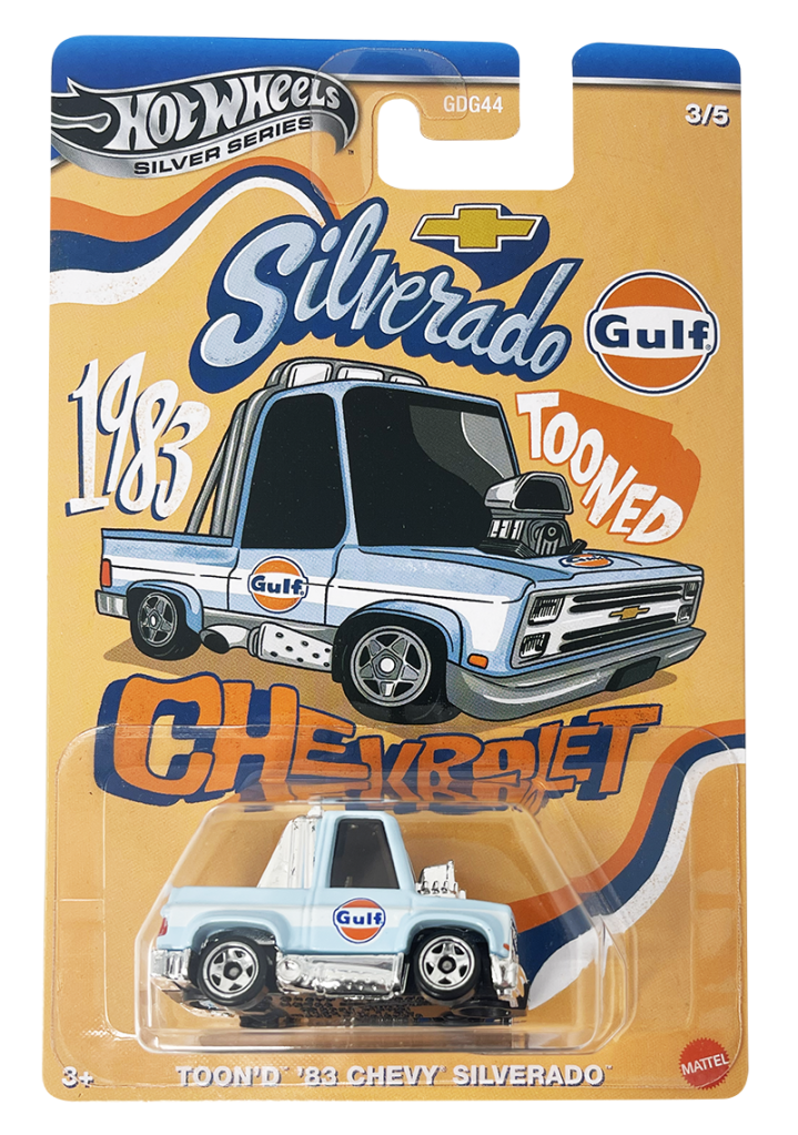 Now, these noppo-style Tooned cars get their own segment in the Hot Wheels Silver Series — a semi-premium line by Hot Wheels featuring full detail, special wheels, and sometimes a metal/metal casting. #Tooned Gulf features these tooned cars with #Gulf Racing liveries. Gulf Racing has long been a popular livery in the Hot Wheels realm.