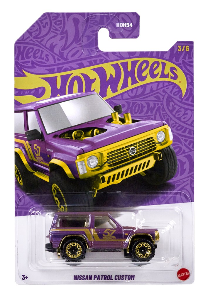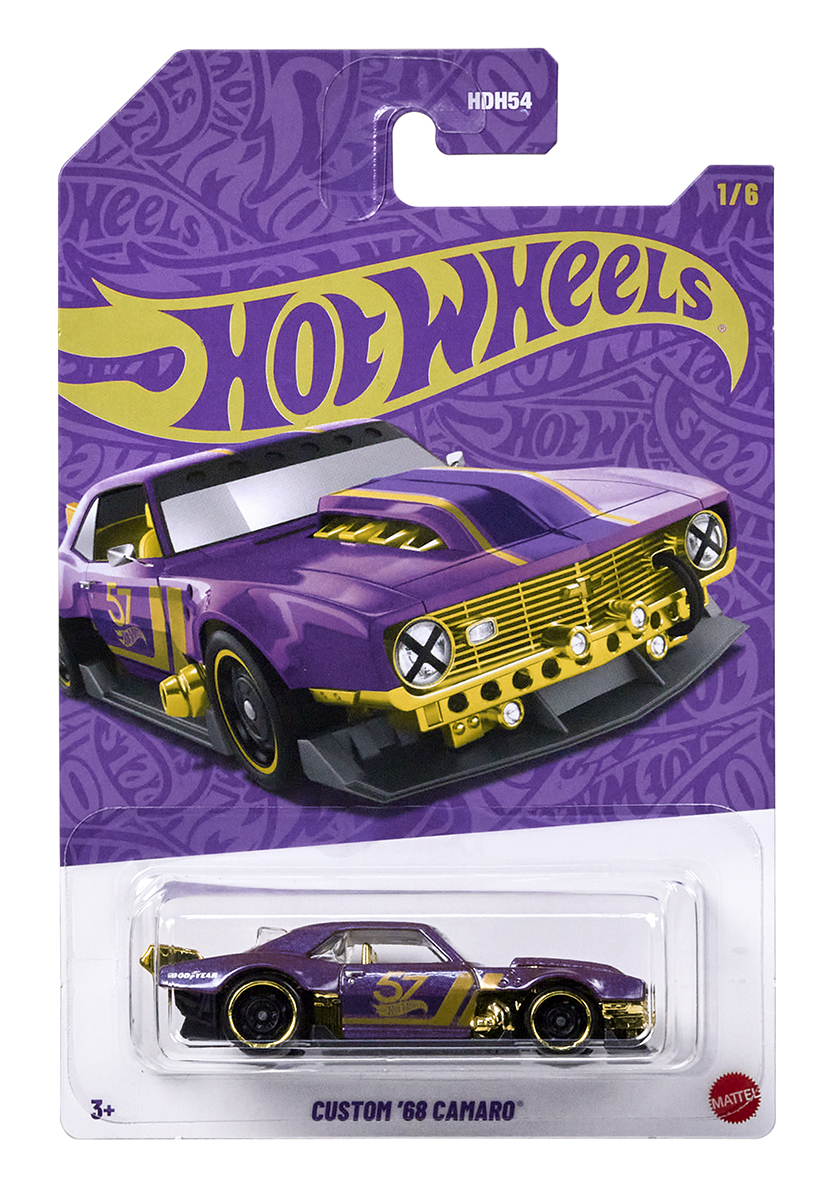 The second mix of the #Anniversary Series for 2025 celebrates the 57th Anniversary of Hot Wheels — continuing on this themed basics series that started in 2018 for the brand’s 50th anniversary. Every mix contains 6 vehicles with one of them being the #Chase, which is limited to 1 per case of 24. If I had to categorize this mix, I’d say it’s modified cars (#Custom ’68 Camaro & Mod Speeder) vs. rally vehicles (Nissan Patrol Custom & Rally Speciale) vs. factory fresh sports cars (#Shelby Cobra 427 S/C & Porsche Cayman S).