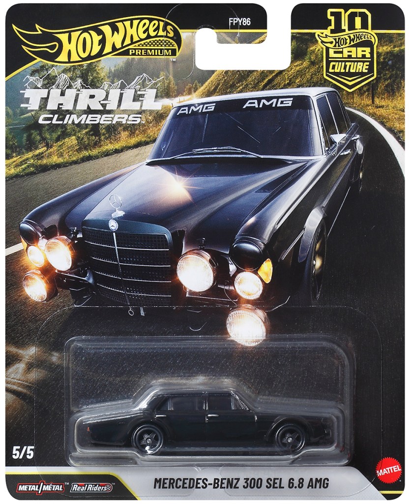 This new chase structure presents a great opportunity to produce some favorite vehicles in all-black that normally wouldn’t be considered due to chase status (in most cases) being reserved for the new casting. In Thrill Climbers, the #Mercedes-Benz 300 SEL 6.8 AMG gets “murdered-out” in all-black, and man, does this car look sinister! Check out the unboxing below and how I nerd out about it.