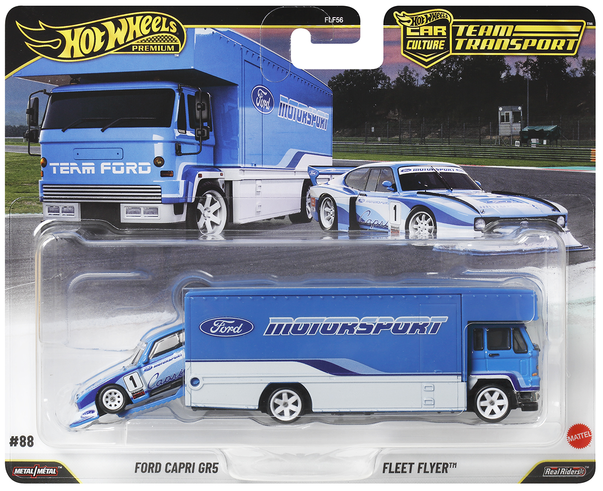 #88 — The Ford Capri GR5 returns 3 years after it’s debut. This new release features a Ford Motorsport livery that varies in both color and design from the first release. And, with it’s Ford Motorsport Fleet Flyer, you can haul either release in it.