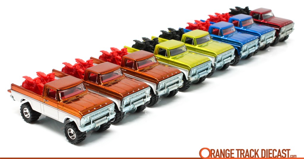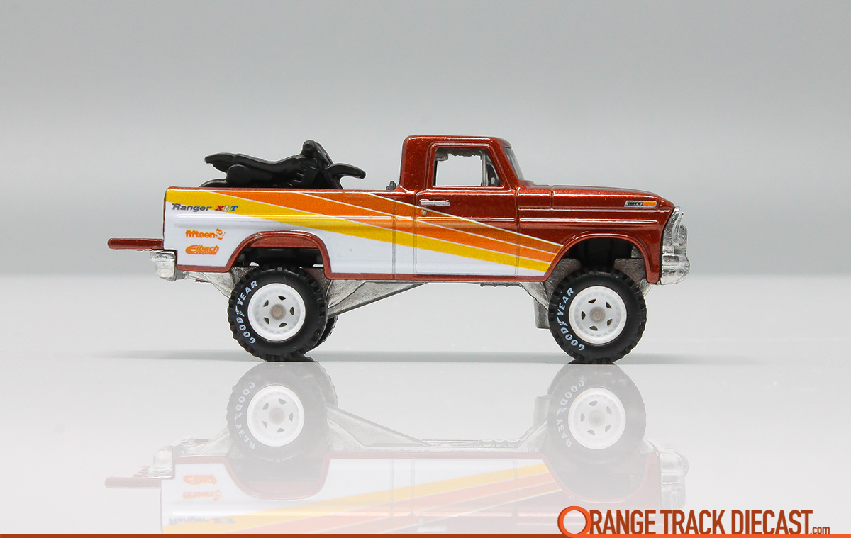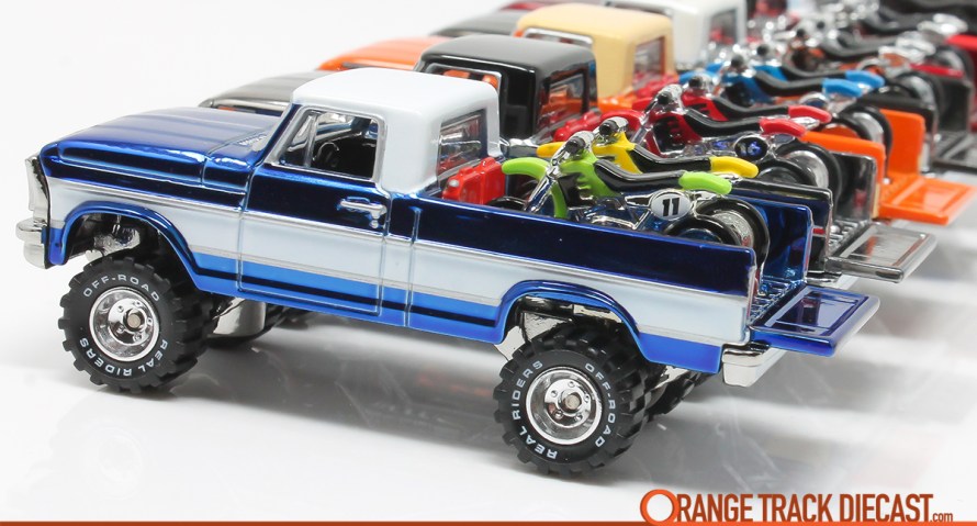 Choosing to collect the Texas Drive ‘Em was knowingly not going to be easy — yet, I did it anyway. This lifted 1970s Ford F-series pickup had appealed to collectors from the moment it appeared in Series 5 of the Hot Wheels Classics in 2009. For me, this Larry Wood design screamed personality. It was lifted. It was spectraflame. It had a witty name based on my favorite card game at the time: Texas Hold ’em. The TDE was headed out-of-town for some high-stakes, dirt biking action!