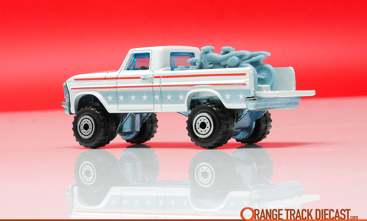 Nothing says ‘merica more than a lifted truck with American flag flames ready to go dirt bikin’. When the 4th of July themed assortment hit retailed in the summer of 2010, the TDE was quickly scooped up. It was a chance for collectors — especially those who customize — to grab this elusive casting for a buck.