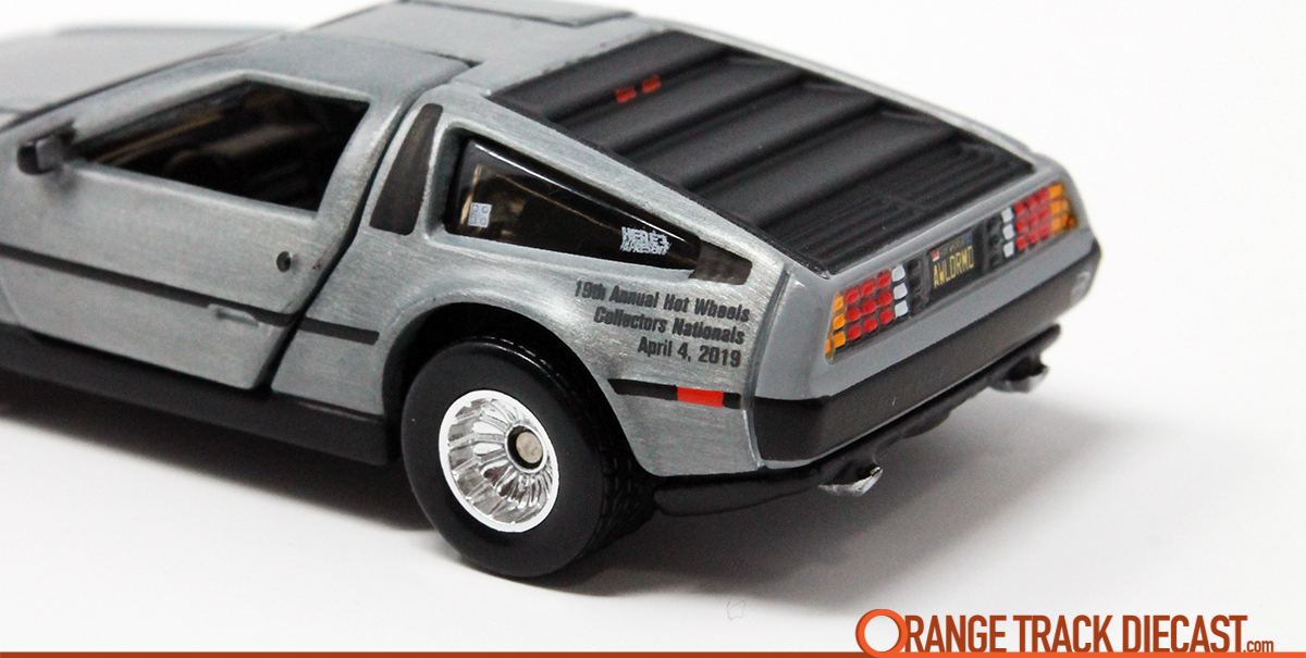 Hot Wheels ’81 DeLorean DMC-12 from the 2019 19th Annual Collectors Nationals Convention in Lombard, IL (left side rear detail)